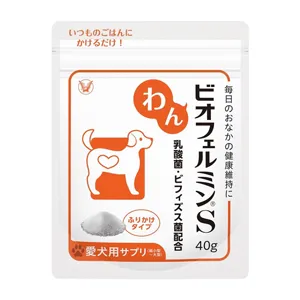 | わんビオフェルミンS 40g | | 3.98 | 粉末タイプ | 毎日のごはんに、腸から元気をプラス。 | 40g | 乳酸菌(ビフィズス菌、フェーカリス菌) | 粉末タイプ | kcal | 日本 | サッとごはんに混ぜられる粉末で続けやすい |